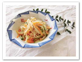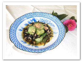 (1)きゅうりは輪切りに、ツナ缶は油をきります。ひじきは乾燥の場合はお湯で戻してください