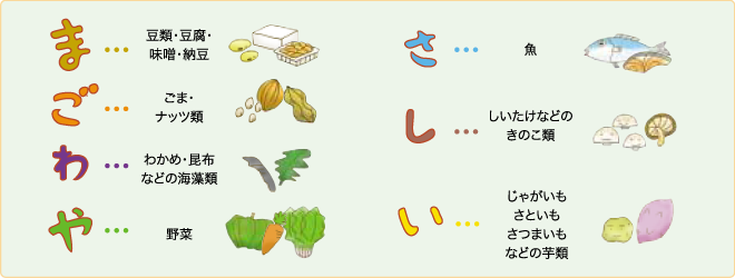☆各頭文字は1種類しか取り入れないわけではなく、1食(1日)に何種類でも取り入れてかまいません。
