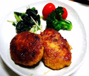 5.フライパンに油を敷き、4の種を小判型に整えてフライパンに置く。弱火から中火で両面焼く。