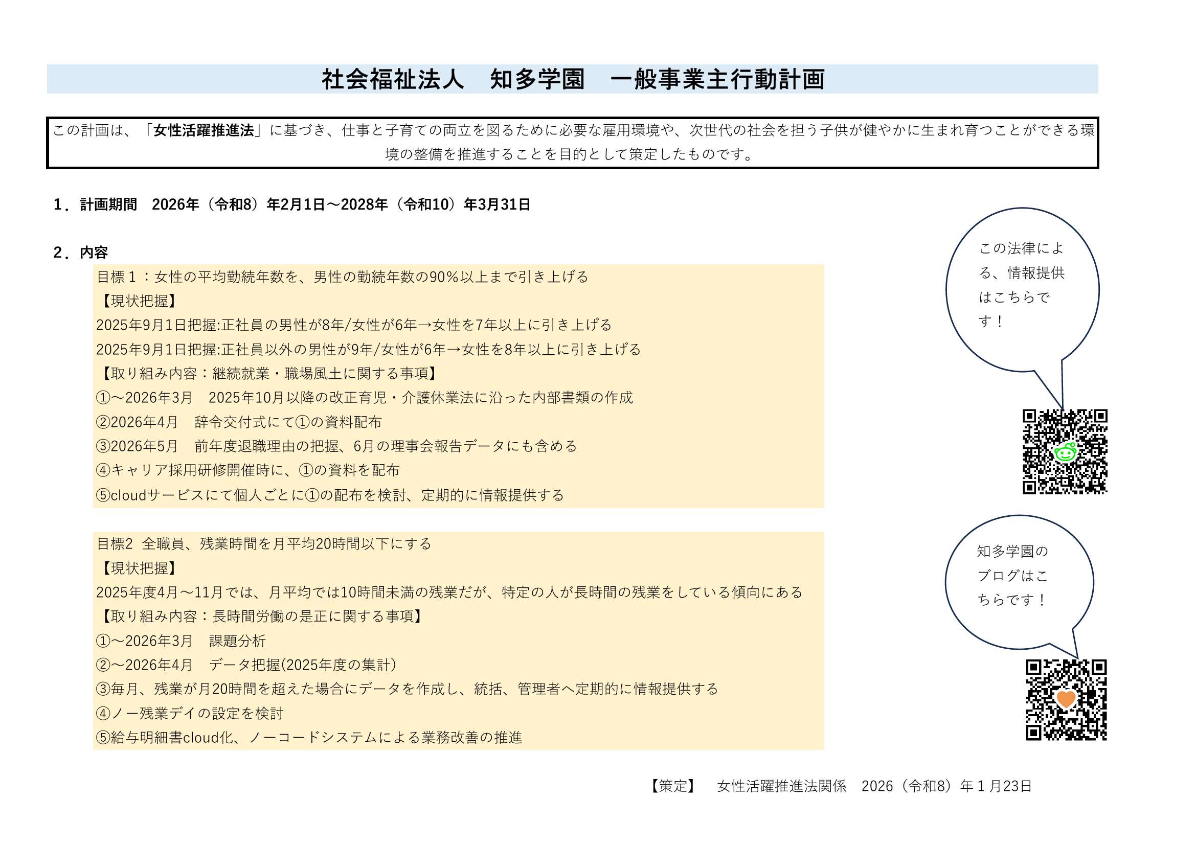 一般事業主行動計画の計画を「女性活躍推進法」に基づき以下の通り変更しました。
