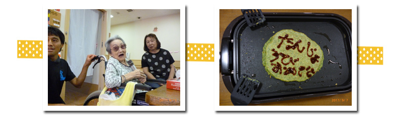 昔お好み焼き屋さんを営んでいた方の誕生日会ではお好み焼きを作りました。