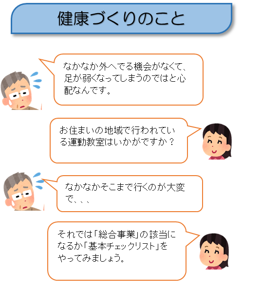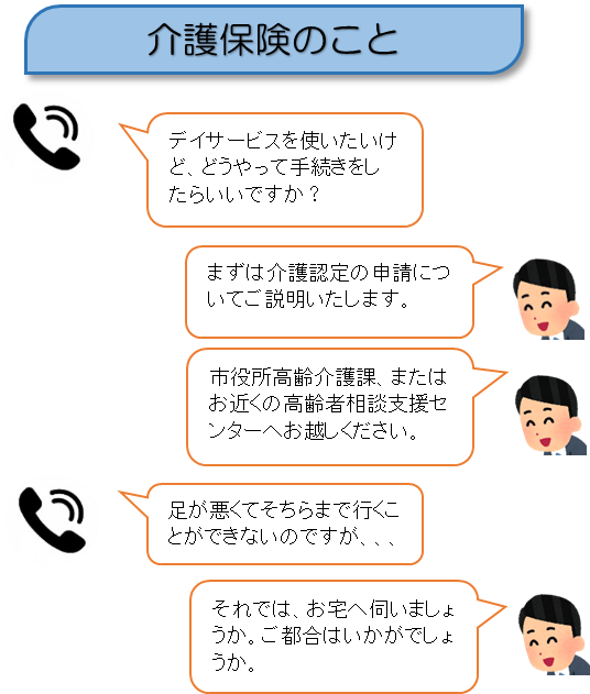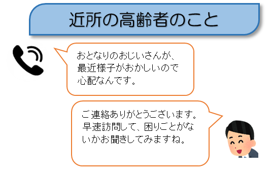 高齢者のみなさんが、住み慣れた地域で安心して生活できるよう、ふだんの暮らしの中の困りごとについて相談を受け付けます。