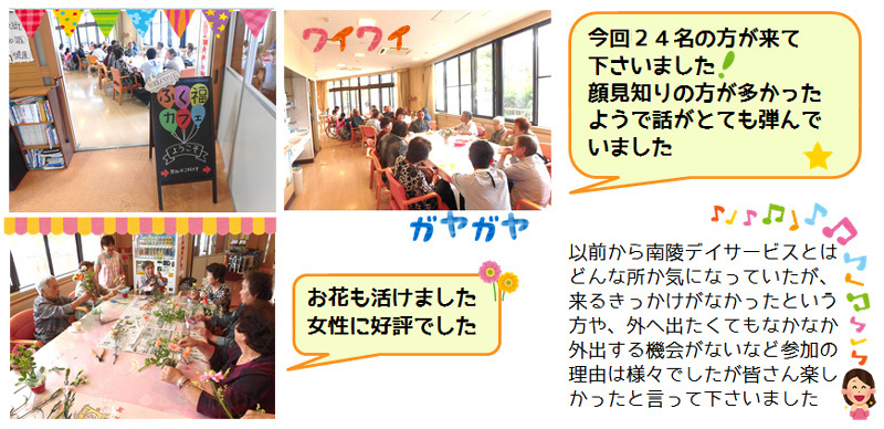 地域の人に南陵デイサービスはどんなところでどんな職員がいるのかを知ってもらい、親しみのある施設にするべくカフェを開催します!!!