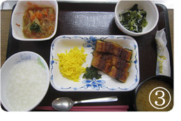 昼食例として、【1】のこちらの写真は普通食です。
