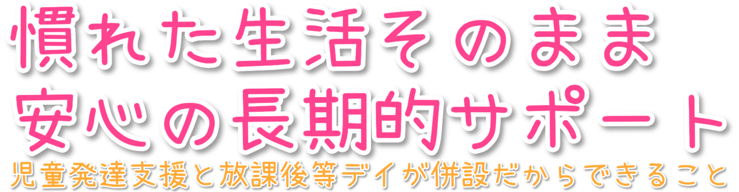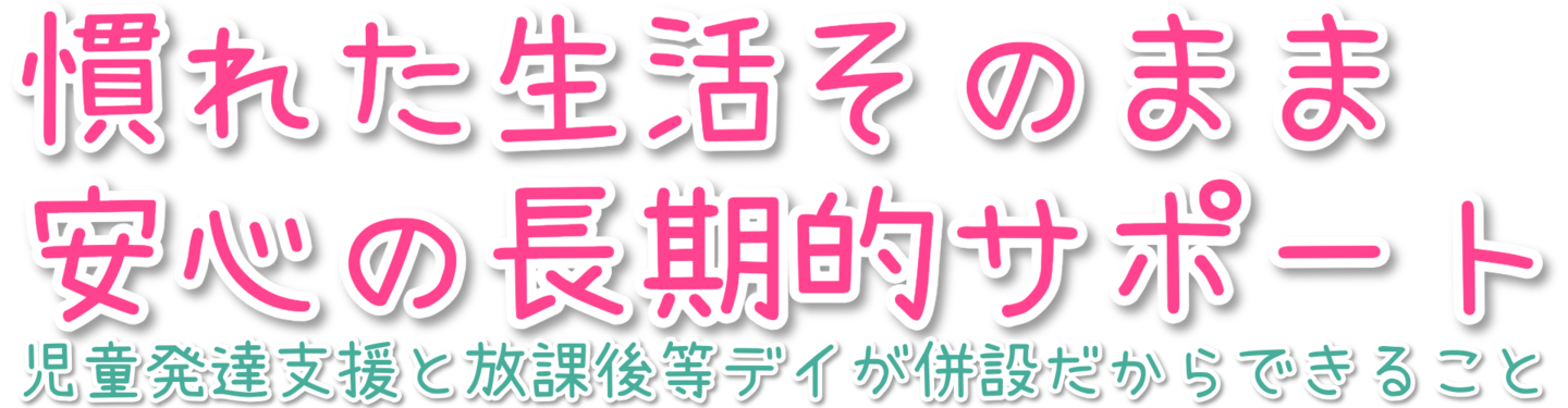 長期的なサポートが行え、慣れた環境を維持したまま、お子様の性格や個性をよく知った専門のスタッフが成長のお助けをします。